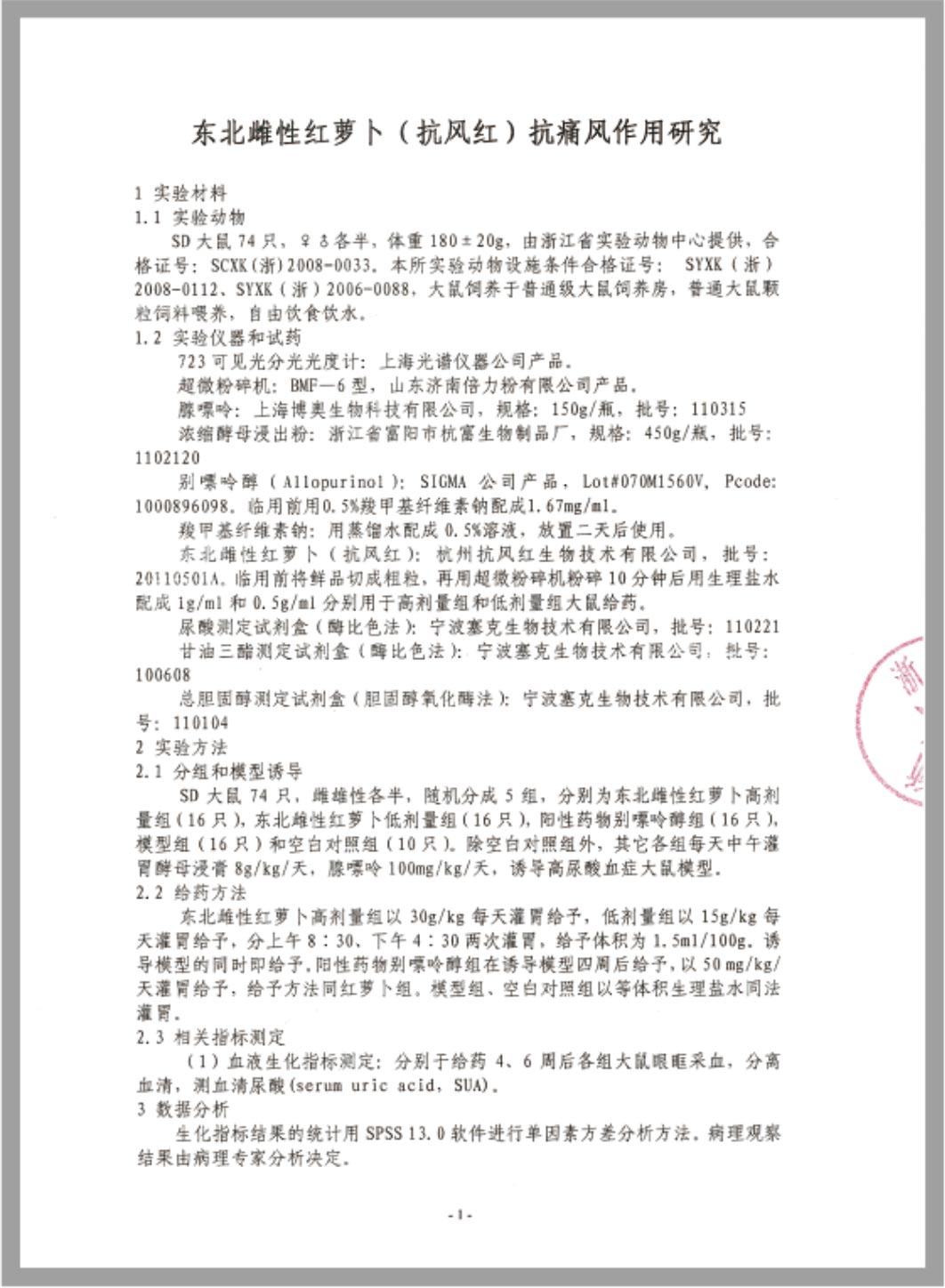 東北雌性紅蘿卜抗痛風(fēng)作用研究
