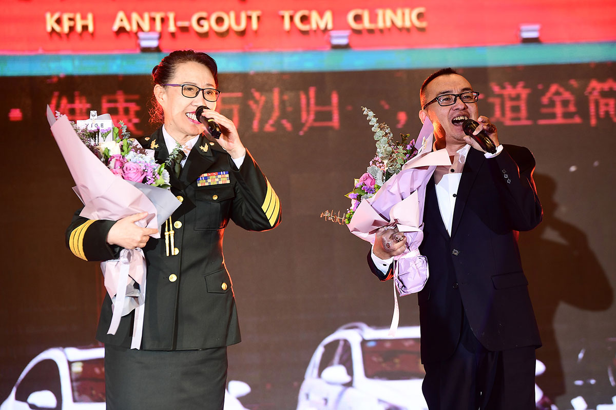 慶典現(xiàn)場最感人的一幕要數(shù)兩位“抗風斗士”葛晟杰和關(guān)海強登臺分享一路與痛風抗爭的心路歷程。他們都是風華正茂,卻備受痛風折磨,在遇到抗風竤之前,幾乎都瀕臨絕望。來自山東的25歲葛晟杰,痛風七年、癱瘓三年,經(jīng)過在抗風竤門診的系統(tǒng)治療后,丟掉輪椅和雙拐,自己走上了舞臺;關(guān)海強更是在被多家三甲醫(yī)院診斷“不截肢就有生命危險”,并且還面臨著多臟器衰竭的風險,抗風竤醫(yī)療集團張汭鈞董事長冒著極大的風險,向他伸出救助之手。如今的關(guān)海強不僅恢復了生命活力,而且還走上舞臺為大家吉他彈唱,重獲新生的他最想感激的就是張汭鈞董事長、程莉琂總裁以及全體抗風竤人給了他重獲健康的希望!